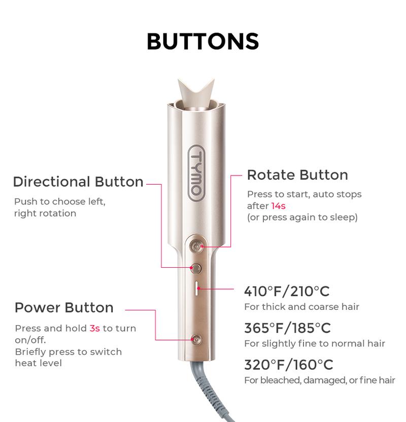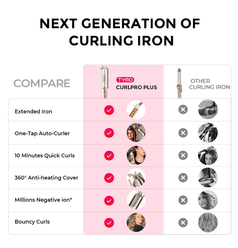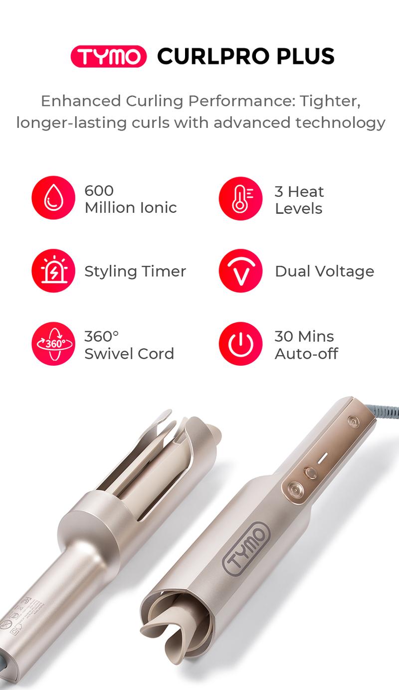 Easy Curls, No Skill Needed TYMO CURLPRO PLUS automatic curling iron curls hair with just a press of a button. Built-in timer signals when your curl is ready, making it effortless to create perfect curls—even for beginners.